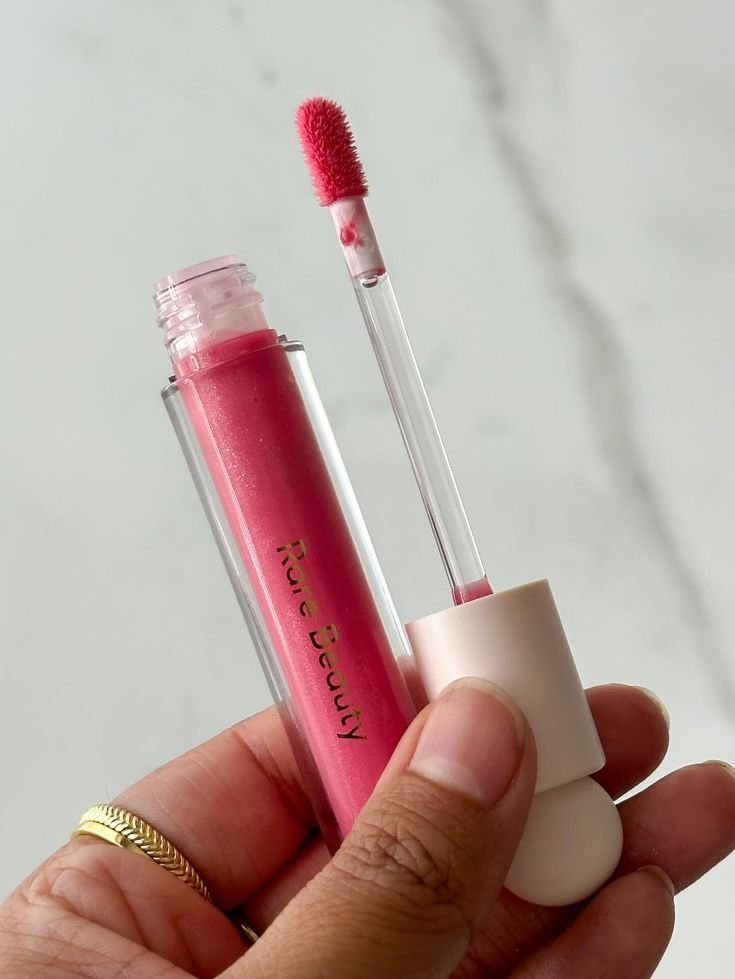 A high-shine, non-sticky lip gloss that gives your lips a luminous, glass-like finish with a subtle shimmer. Shade Glimmer enhances your natural lip color while adding a smooth, fuller-looking effect. The lightweight formula glides effortlessly, keeping lips hydrated and comfortable all day. Perfect to wear alone for a soft glow or layered over lipstick for extra shine.
